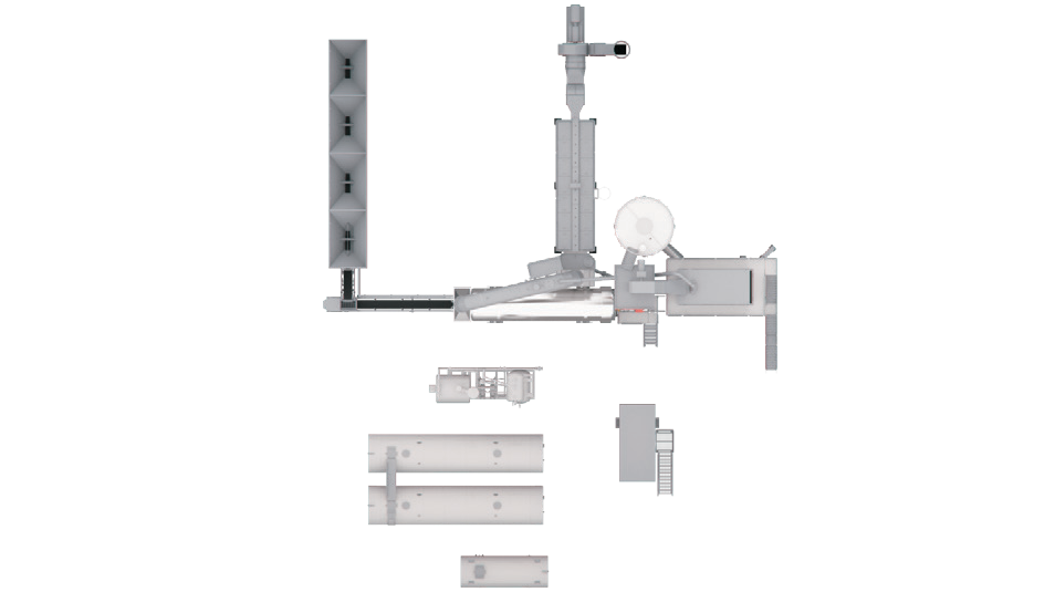 * Silo cốt liệu và băng tải, bệ tháp chính, linh kiện điện tử và
