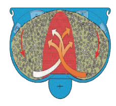 dòng đối lưu chính theo trục giữa, các dòng đối lưu nhỏ liên