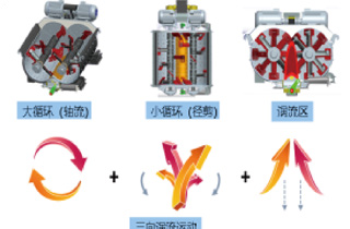 Cánh trộn được bố trí theo hình xoắn ốc, tạo ra chu trình chính theo trục, chu trình phụ theo tiếp tuyến và dòng khuấy rối ở giữa, giúp trộn nhựa đường đều hơn, nâng hiệu suất trộn lên 20%.